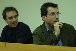 | Fuguet presentando en Valdivia el libro acompañado del actor Luciano Cruz Coke |