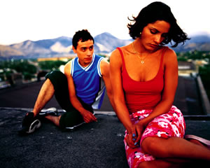| Sebastián Layseca (Miguel), acosando a Ingrid Cruz |